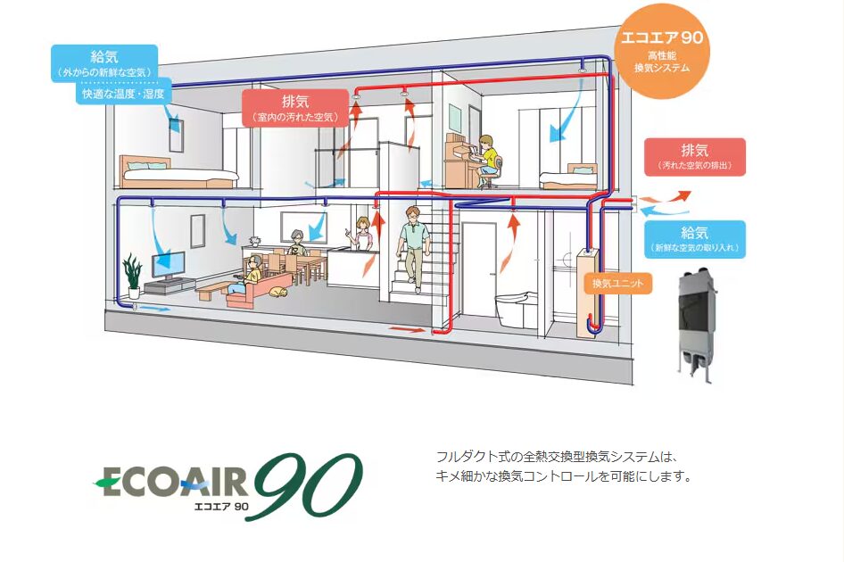 この商品は「エコエア90+全館空調」のシステムとなっており