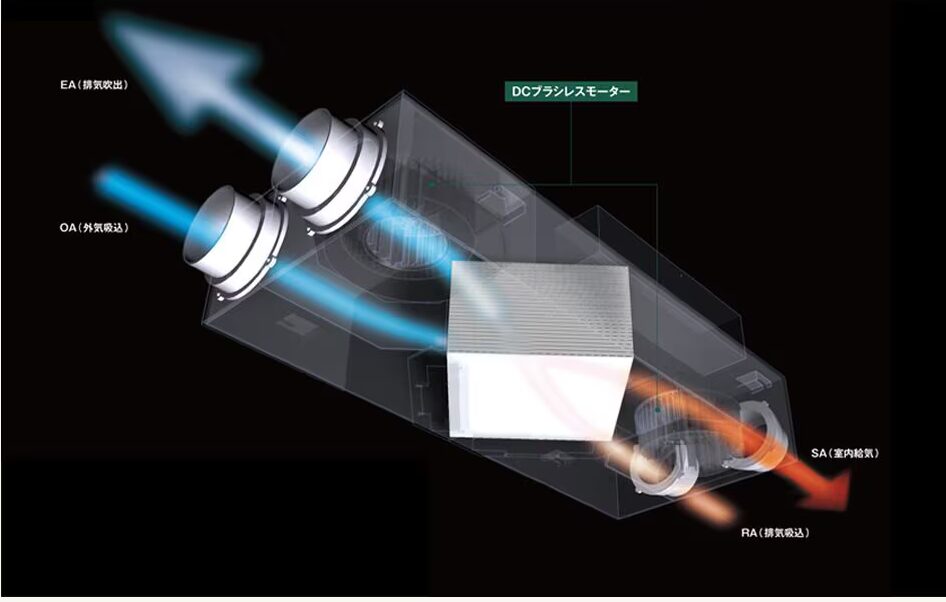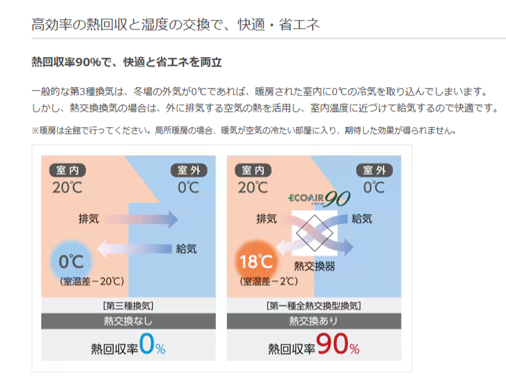 また、外気と内気を入れ替える際に熱交換も一緒におこなうため、