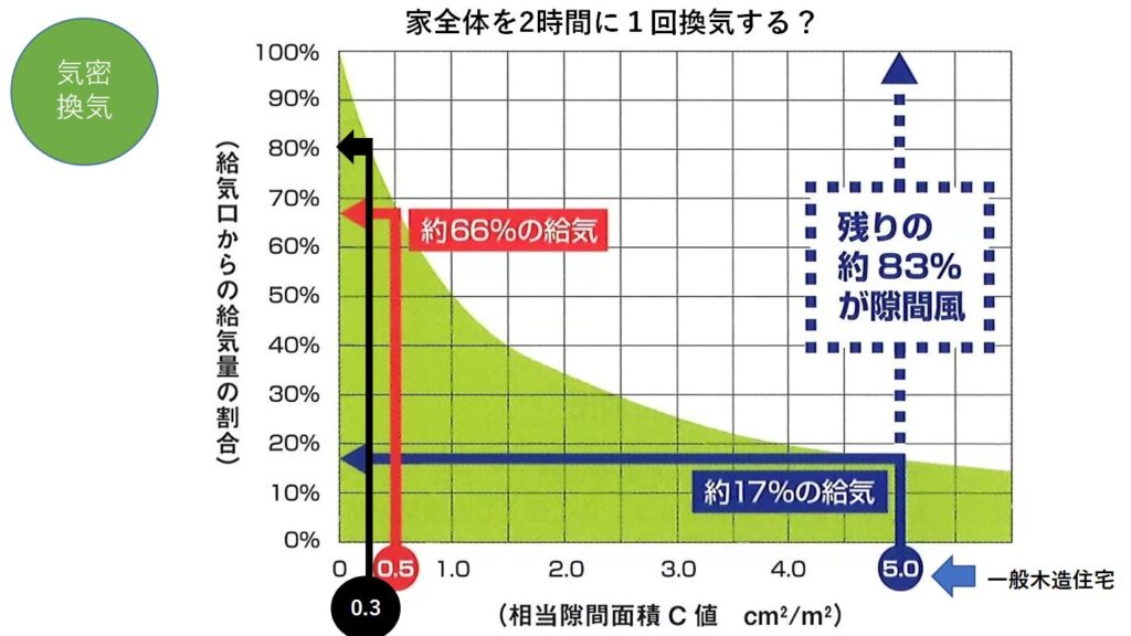 ほどんどお家は気密性が低い+自然換気(第3種換気)です。