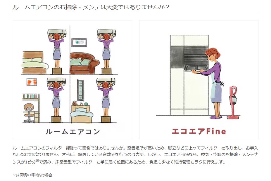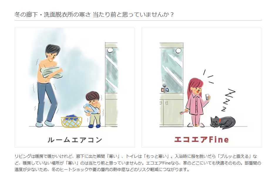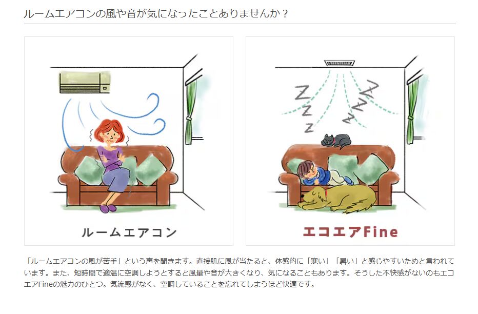 ▼ルームエアコンとエコエアFineの違いを画像で載せています