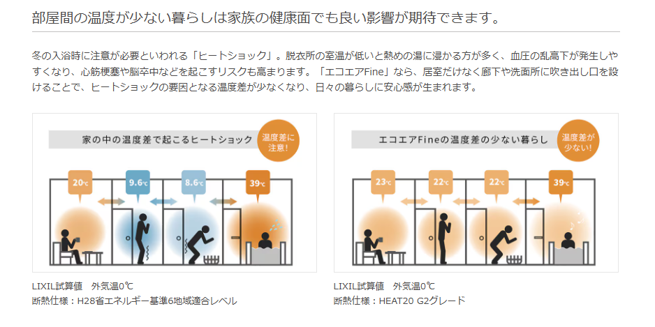▲近年、話題のヒートショックは室内の温度差から生じております