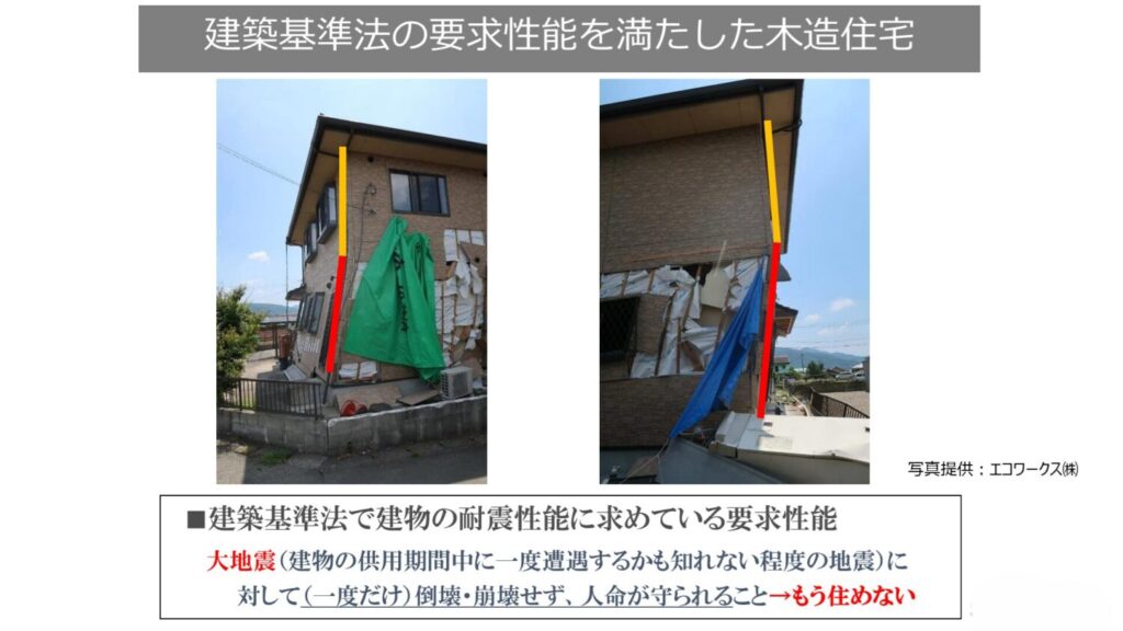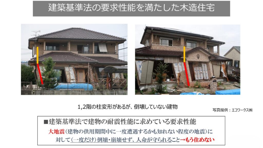 ▲今までの建築基準法による設計では幾度と起こる大地震には勝てません