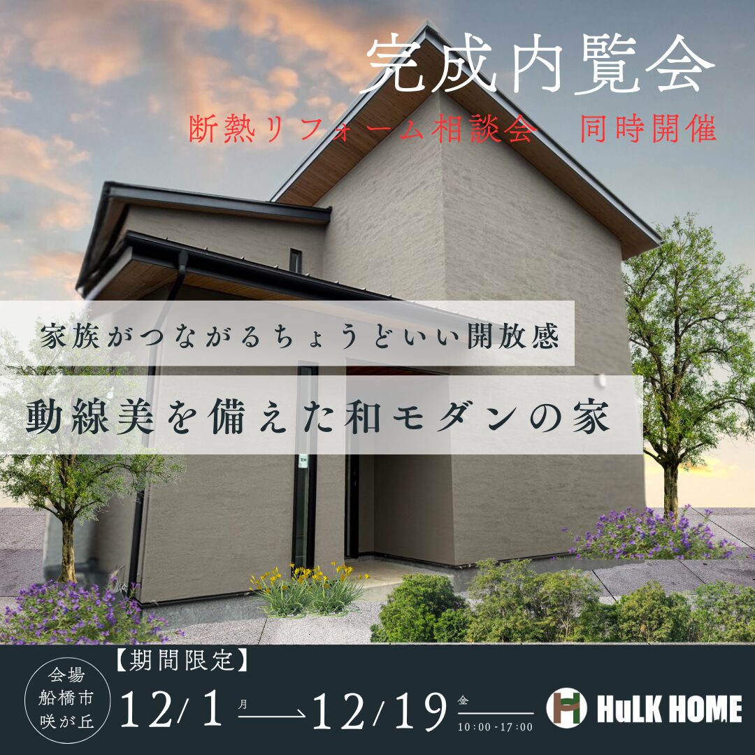 『動線美を兼ね備えた和モダンの家』 完成内覧会 12月1日(月)〜19日(金) 船橋市咲が丘