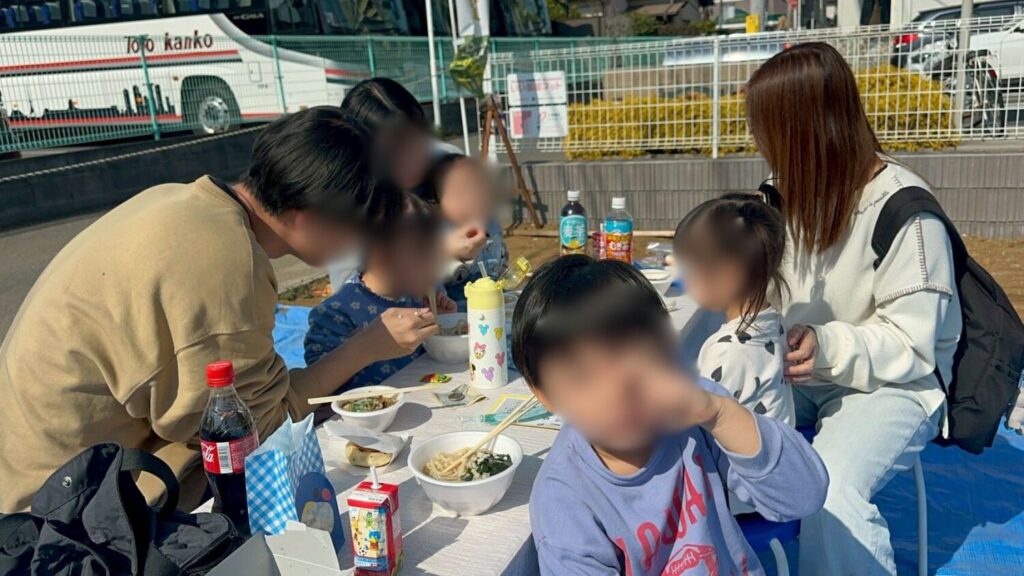 会場には地元の飲食店の皆さまにご協力いただき、キッチンカーが並びました。温かいフードやドリンクを楽しみながら過ごしていただくことができ、会場にはおいしそうな香りが広がります。