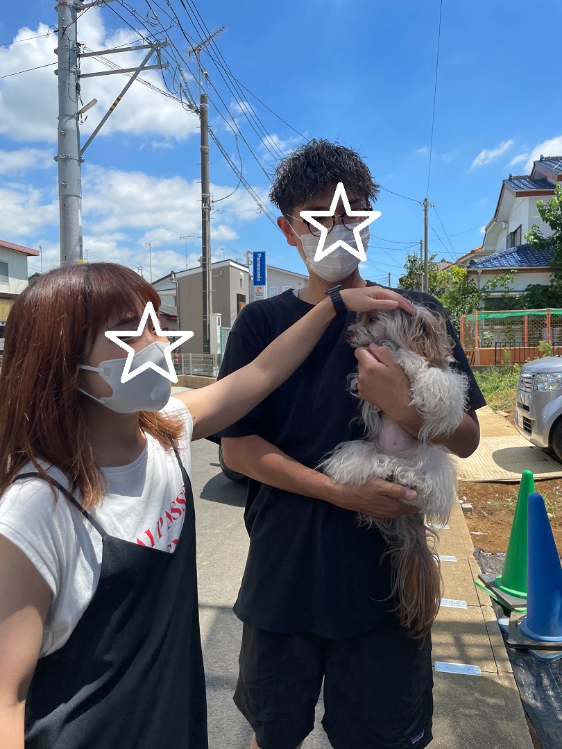 記念写真を撮らせて頂きました♪ こちらのお家はトリミングサロンが併設された住宅で、お施主様は大の動物好き♡ 愛犬パウちゃんの他にも愛猫エメちゃんとジョワちゃんがいらっしゃいます。 全員可愛い女の子♡(ハルクの看板犬ゆずは男の子ですが男の子は男の子で男の子特有の可愛さあります/笑) ハルクも動物好きの集まりですが、大工さんまで動物好きという!ペット談議に花が咲いてしまいました(^^♪