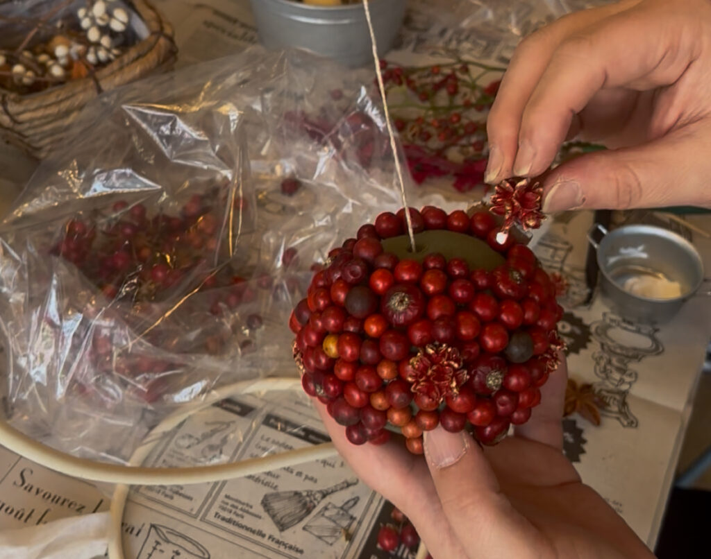 まん丸の球体と、赤い実がとても可愛くて作る前から癒されました♡