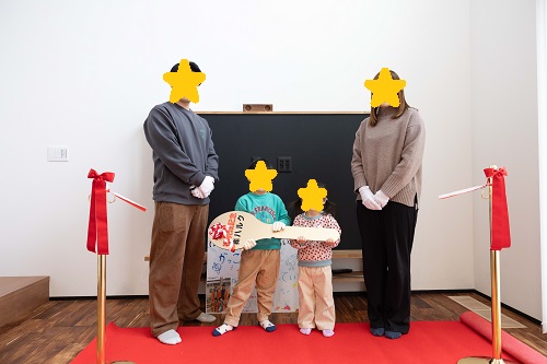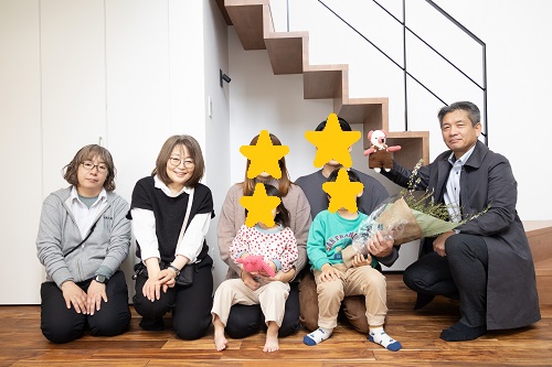 新しいお家の鍵をお渡しした時の ご夫婦の嬉しそうな笑顔と、 お子様たちのキラキラした瞳が印象的でした。