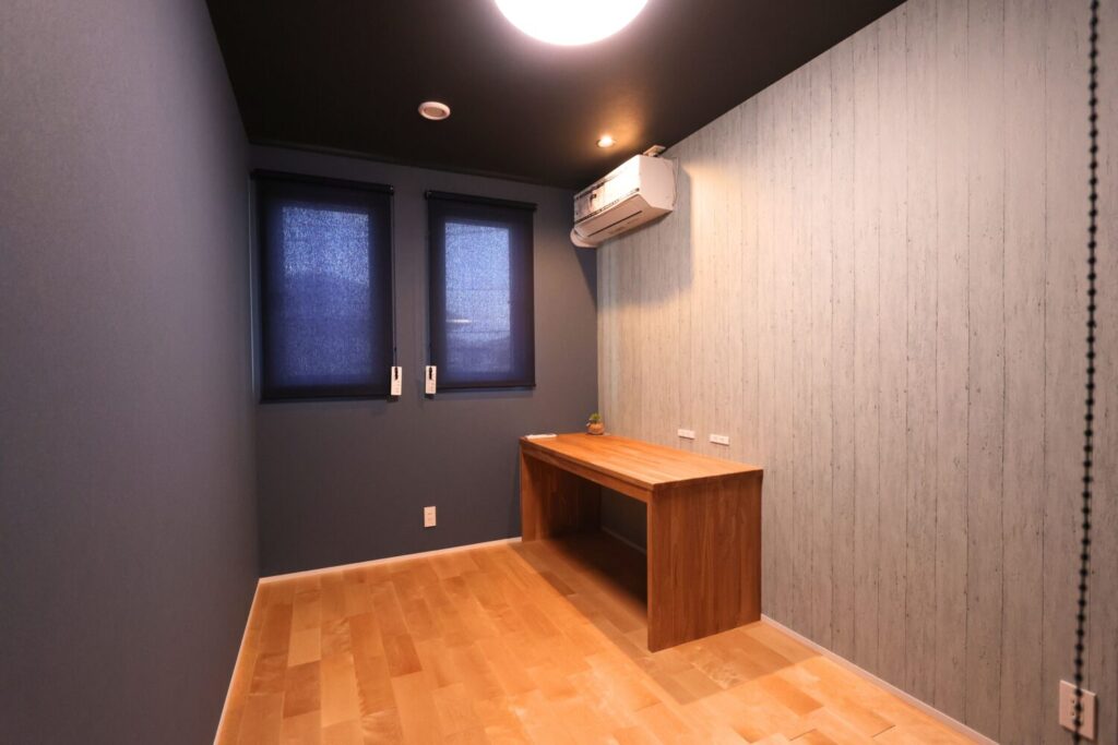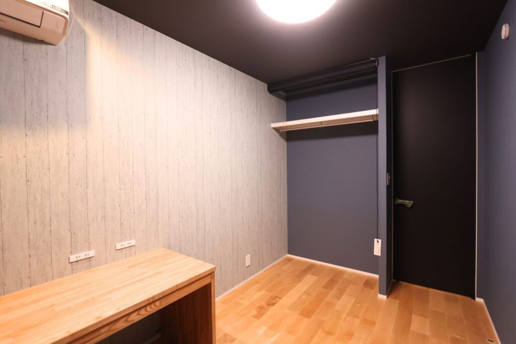 ダークトーンでまとめた居室は、使用される方の好みに合わせてコーディネートしました。落ち着きのある色味が、ほどよくこもり感のある心地よい空間を演出しています。