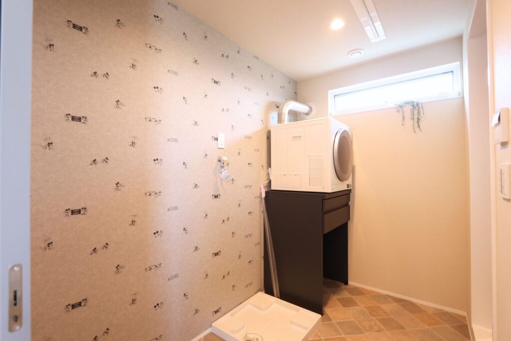 2階のシャワー室前にもランドリールームを設けました。乾燥機を置けるスペースを確保することで、洗濯から乾燥までをスムーズに行え、家事の時短にもつながります。